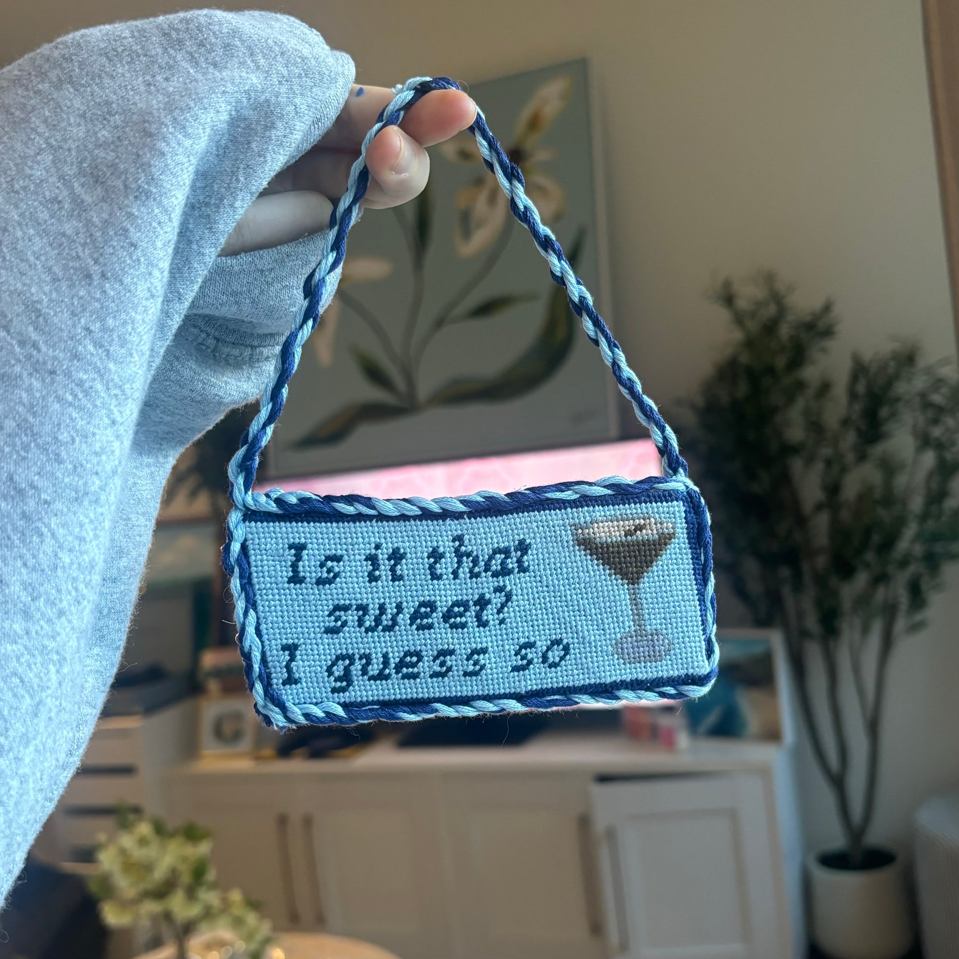 “Is it that sweet? I guess so!” Hand Painted Needlepoint Canvas by Wild Blue Needlepoint